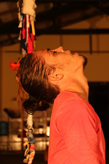 Vejam só: a dramaturgia foi elaborada nas experiências com os intérpretes do Teatrodança e baseada nas vivências com crianças da educação infantil quando percebi relações entre o novo e o velho calcadas em estereótipos: velho não dança, não é alegre, não é comunicativo. E aí surge a Velha Juju! Com a Serpente